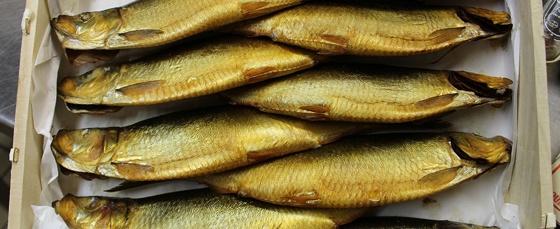Filets de hareng fumés à l'ancienne LABEL ROUGE, kippers, bouffis, filets doux et traditionnels en ballotins, boîtes bois, sous-vide, caisses bois et caisses poly.